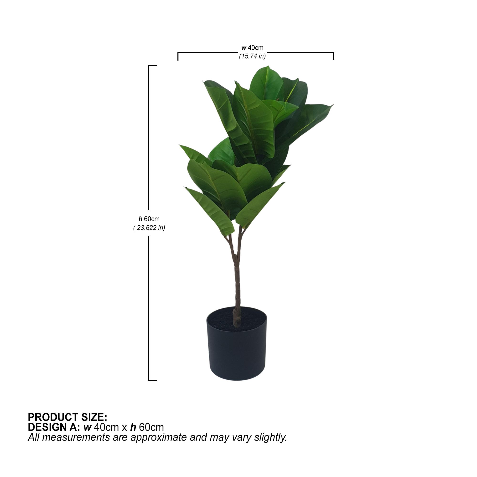 - Chad Rubber Tree: The Diameter is 35 cm (13.77 inches) while the Height is 67 cm (26.37 inches).