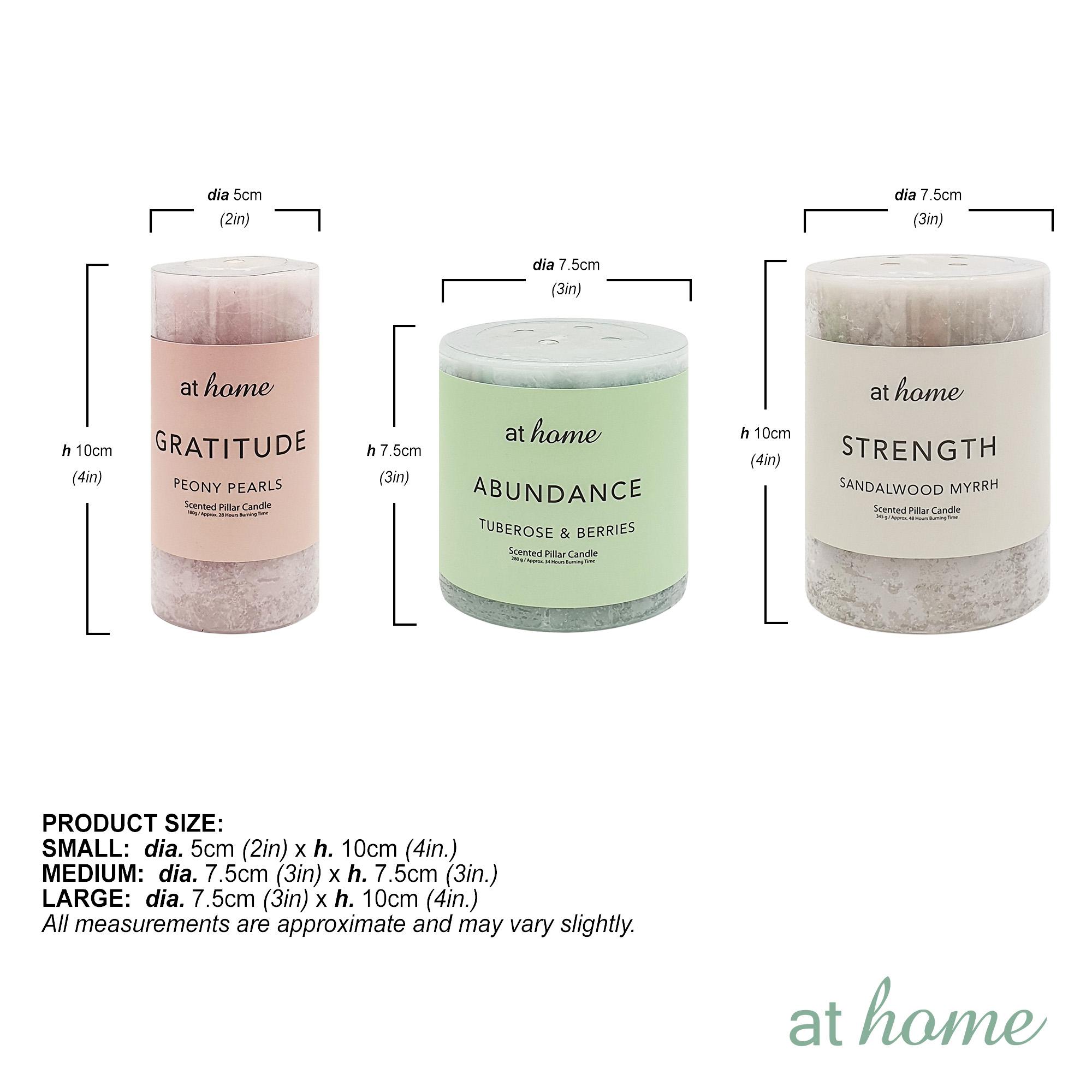 LONG LASTING: The small candle size burns for 28 hours, the medium for 34 hours, and the large for 48 hours. These long burning times are perfect for many uses in the home, such as during a bath or at dinnertime.