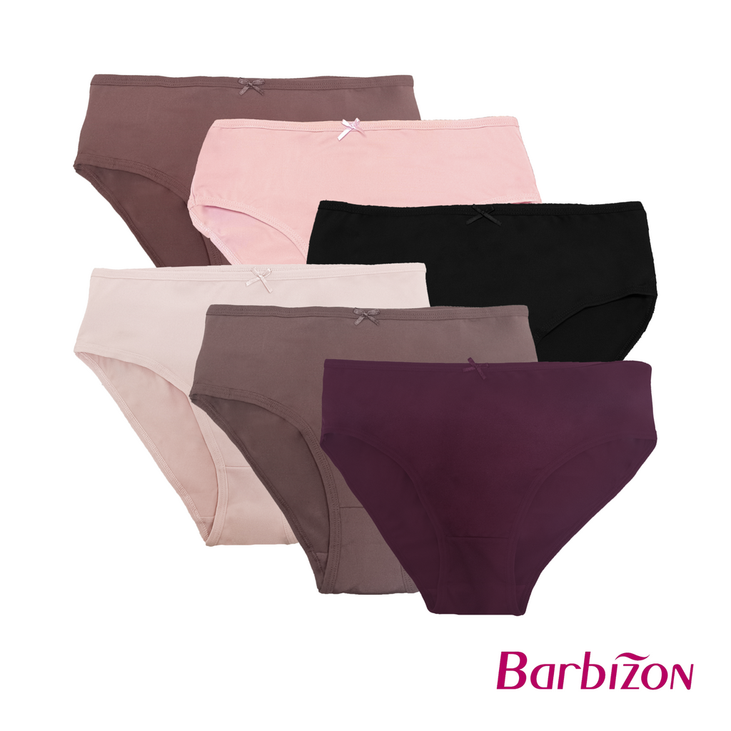 Elevate your everyday essentials with the Barbizon 6-in-1 Pack Bikini Panty. Each piece is designed with an flexible waistband for a comfy fit, a soft lining for all-day freshness, and a dainty ribbon detail that blends beautifully with the main fabric. With six elegant pairs in one pack, you’ll have the perfect balance of style, comfort, and value.