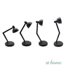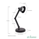 SIZE AND COLORS: The lamp measures 14 inches (36cm) high when open. The base diameter is 4.9 inches (12.5cm). The lamp comes in black or white. Material is plastic.