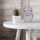 RETRO LOOK: With a smooth metallic finish, this clock’s retro look will complement any bedside table.