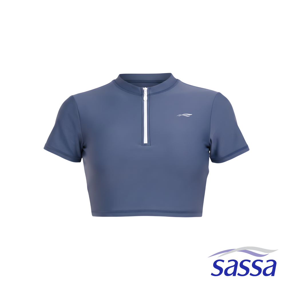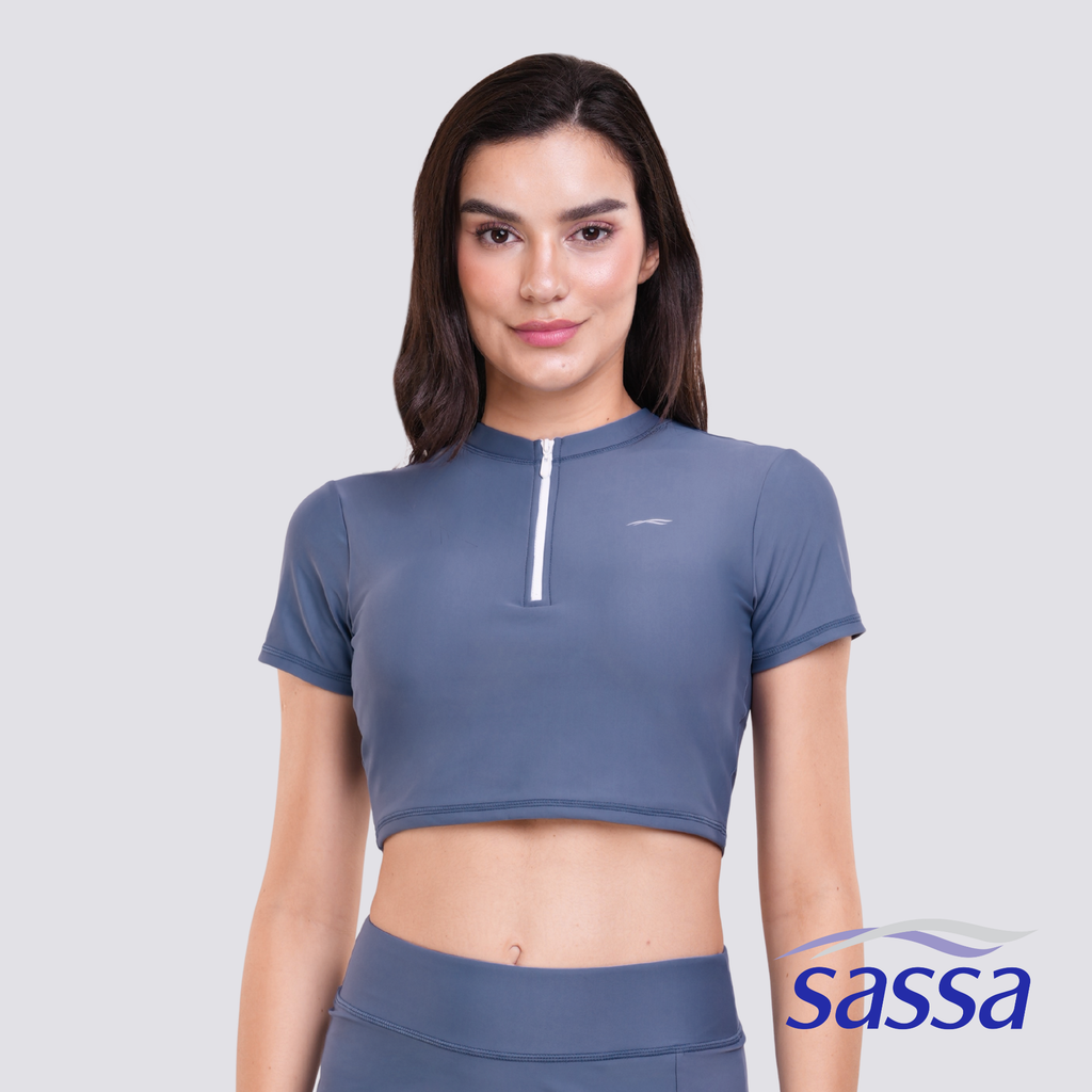 The Sassa Celestia Muse Cropped Short Sleeved Rashguard is your sleek swim essential with a clean solid color look that’s easy to style. Designed with removable bra pads for adjustable support and a half front zipper for easy wear and a sporty touch, it keeps you comfy and confident all day. Available up to 4XL, it’s made to flatter every shape with style and function in mind.