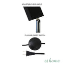 7.) Plug in the lamp and press the foot switch (F) to turn the lamp ON and OFF. Then adjust lamp head to your desired angle (A).