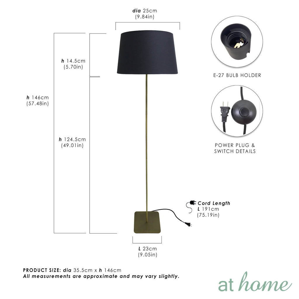 SIZE AND COLOR: The lamp measures 57.48 inches high (146 cm) and the metal shade’s diameter is 9.84 inches (25 cm). Available in color Gray.