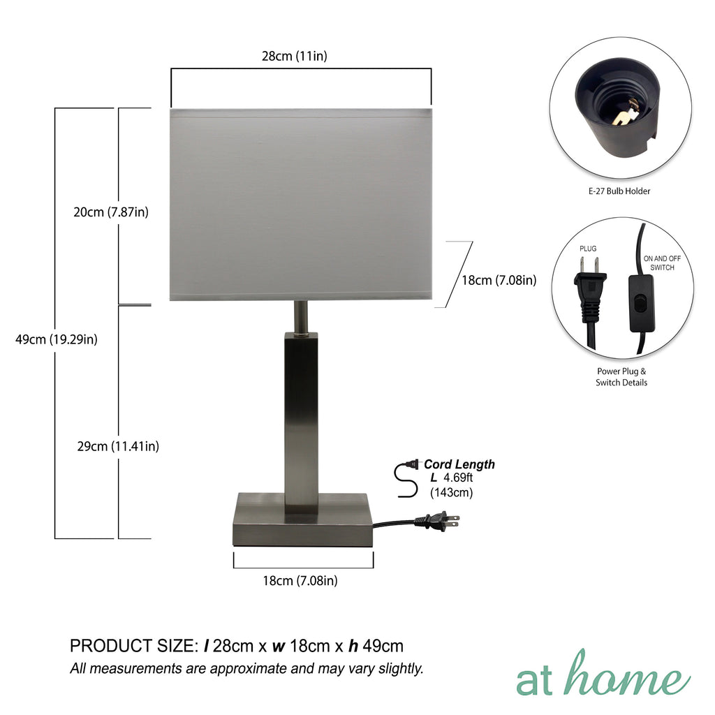BULB TYPE: This lamp has an E-27 bulb socket. It can light bulbs with up to 25 watts maximum. (bulb not included). It is powered with a flat pin plug for plugging into a wall socket.
