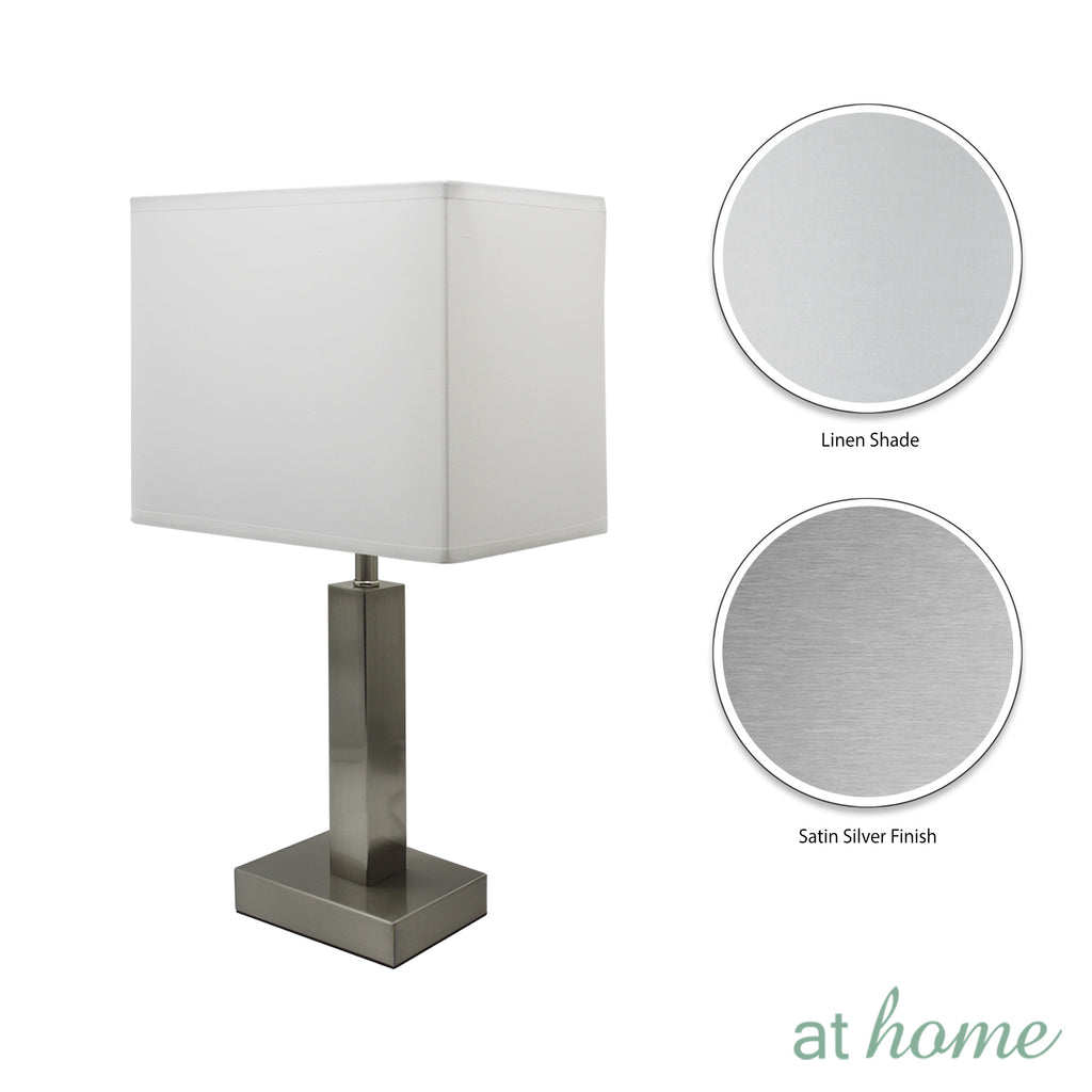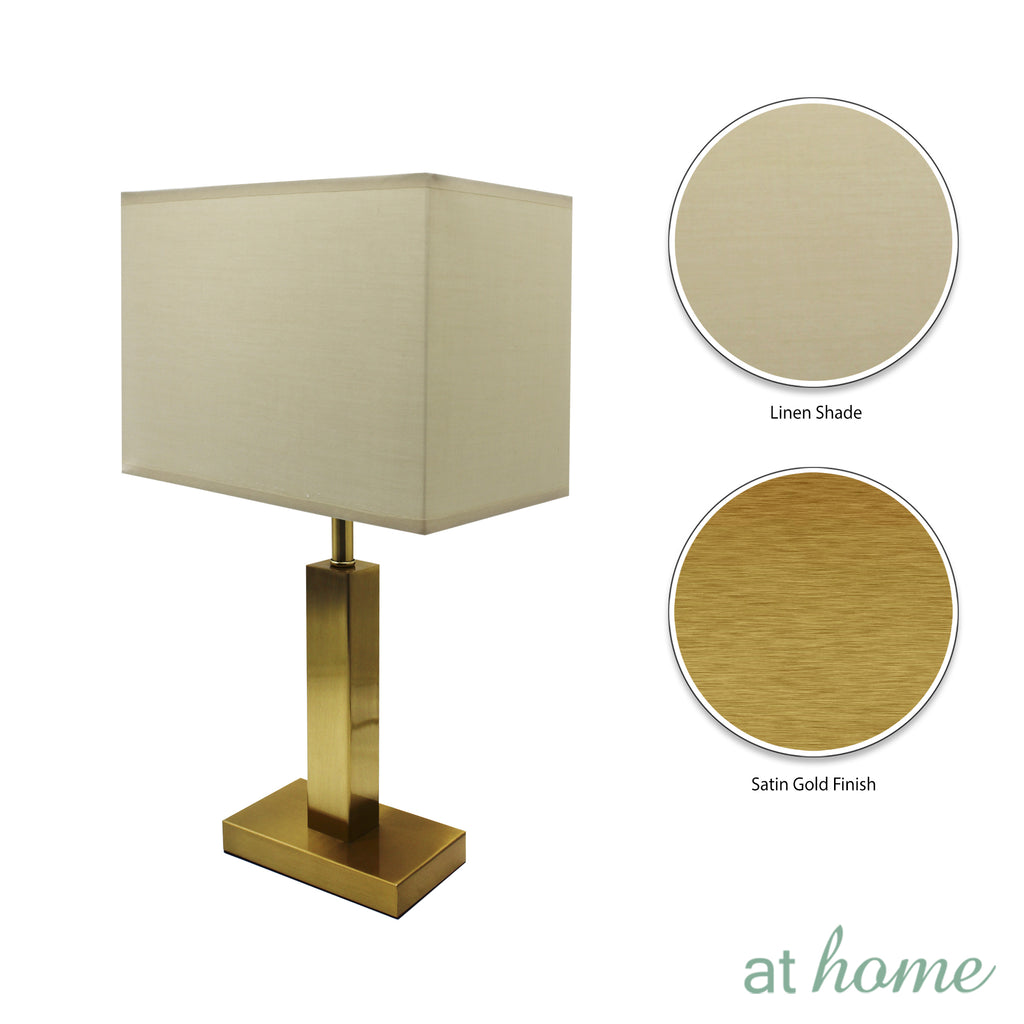 SIZE AND COLORS: The lamp measures 19.29 inches high (49 cm) and the shade’s diameter is 11 inches (28 cm). Available in color Satin Gold and Satin Nickel.