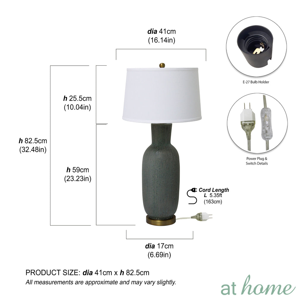SIZE AND COLOR: The lamp measures 32.48 inches high (82.5 cm) and the shade’s diameter is 16.94 inches (41 cm). Available in color Green.