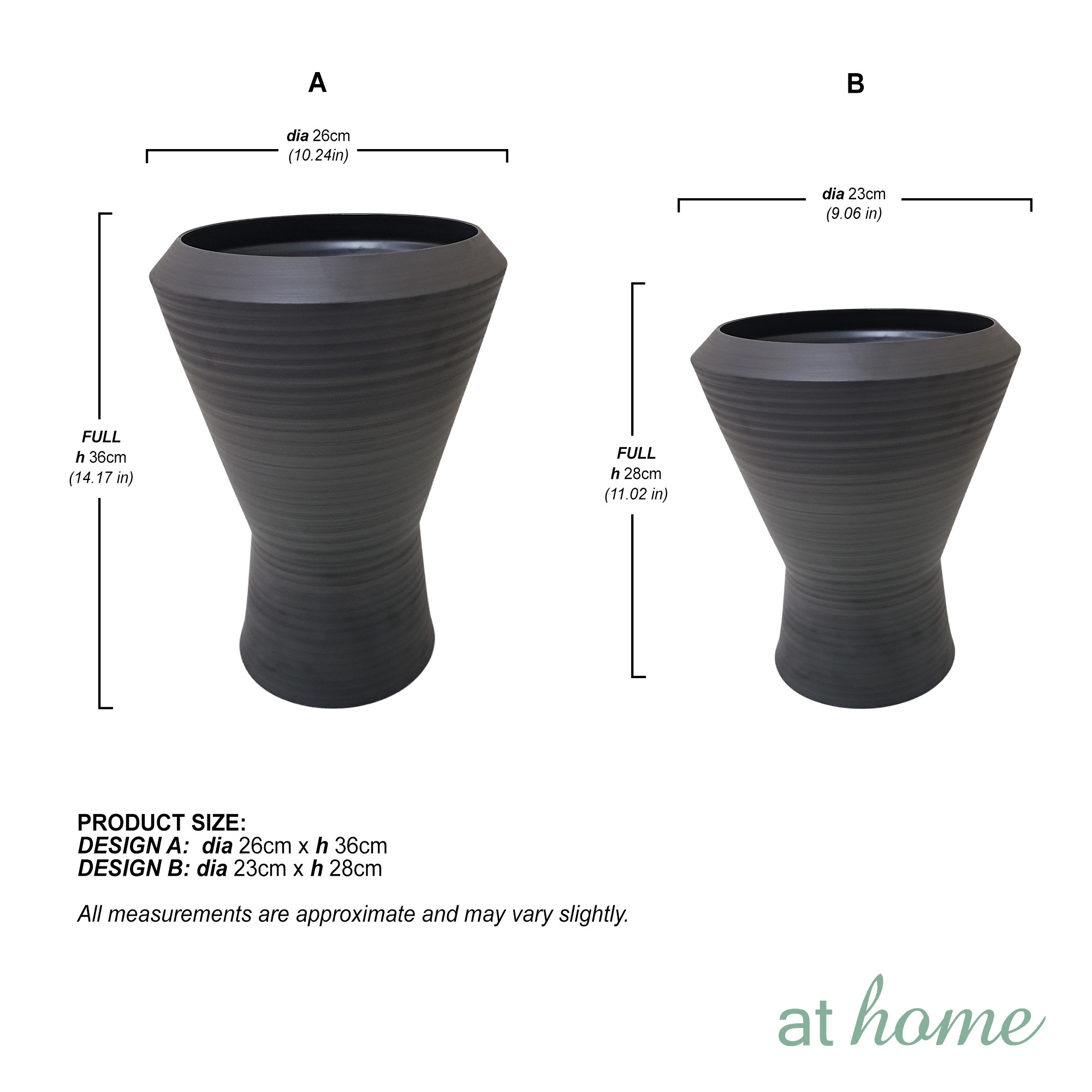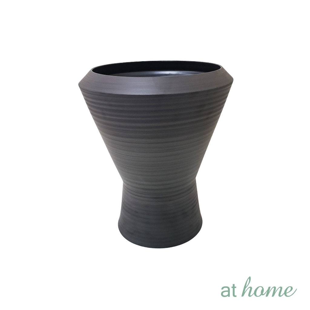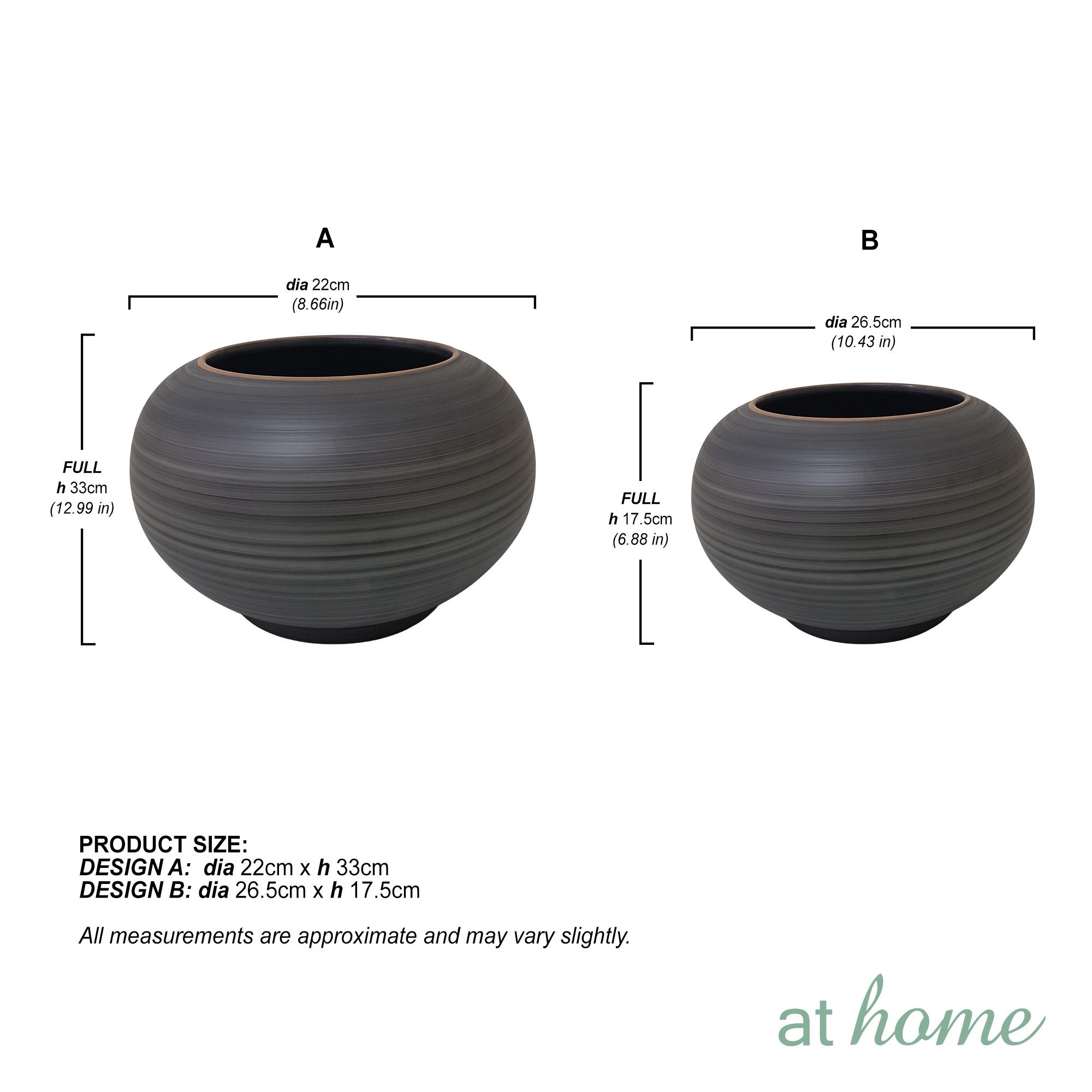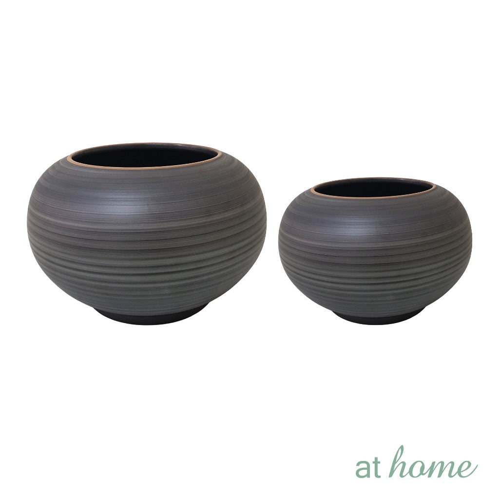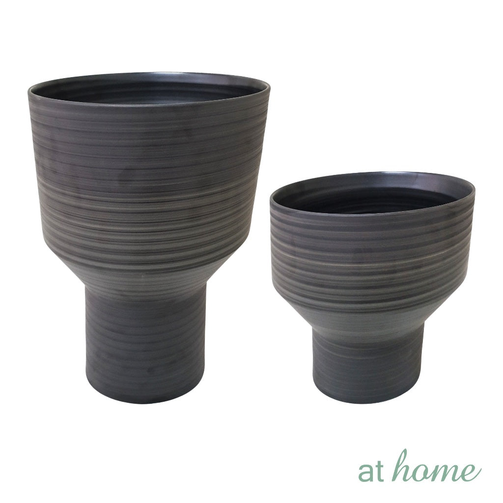 Each vase in this collection features a unique, horizontally ridged texture that adds depth and visual interest. The rich, earthy tone (a sophisticated blend of charcoal and natural browns) complements a wide range of interior styles, from contemporary to rustic. The subtle matte finish enhances their natural, handcrafted appeal.