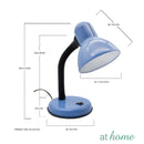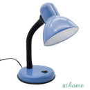 SIZE AND COLORS: The lamp measures 12.60 inches high (32cm) when fully extended. Comes in 5 colors, choose from black, white, blue, baby blue and gray The shade is made of metal and the base is made of plastic.