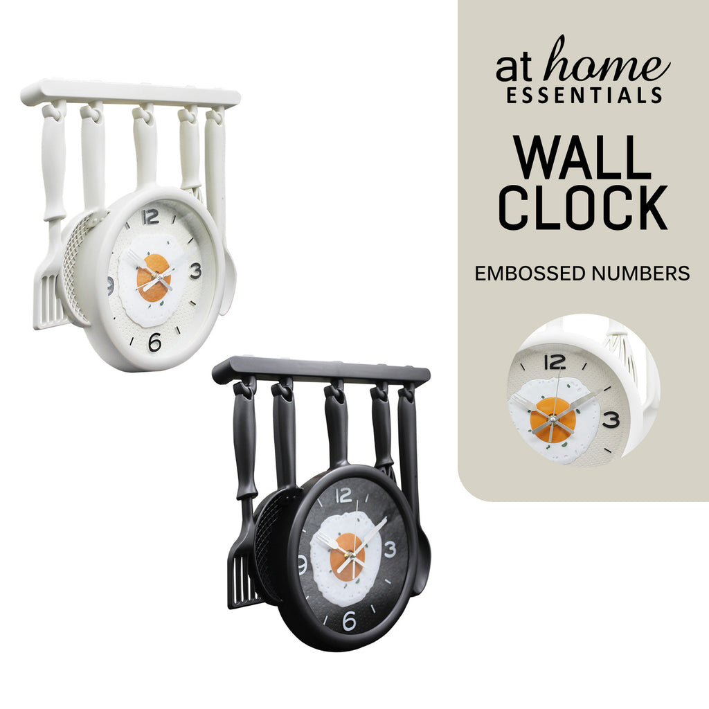 MODERN LOOK: With a smooth, opaque finish, this clock’s tasty, modern pan design complete with attached spoon, spatula, and whisk will complement any kitchen. The scrumptiously sturdy plastic frame makes it easy to clean, keeping dust away.