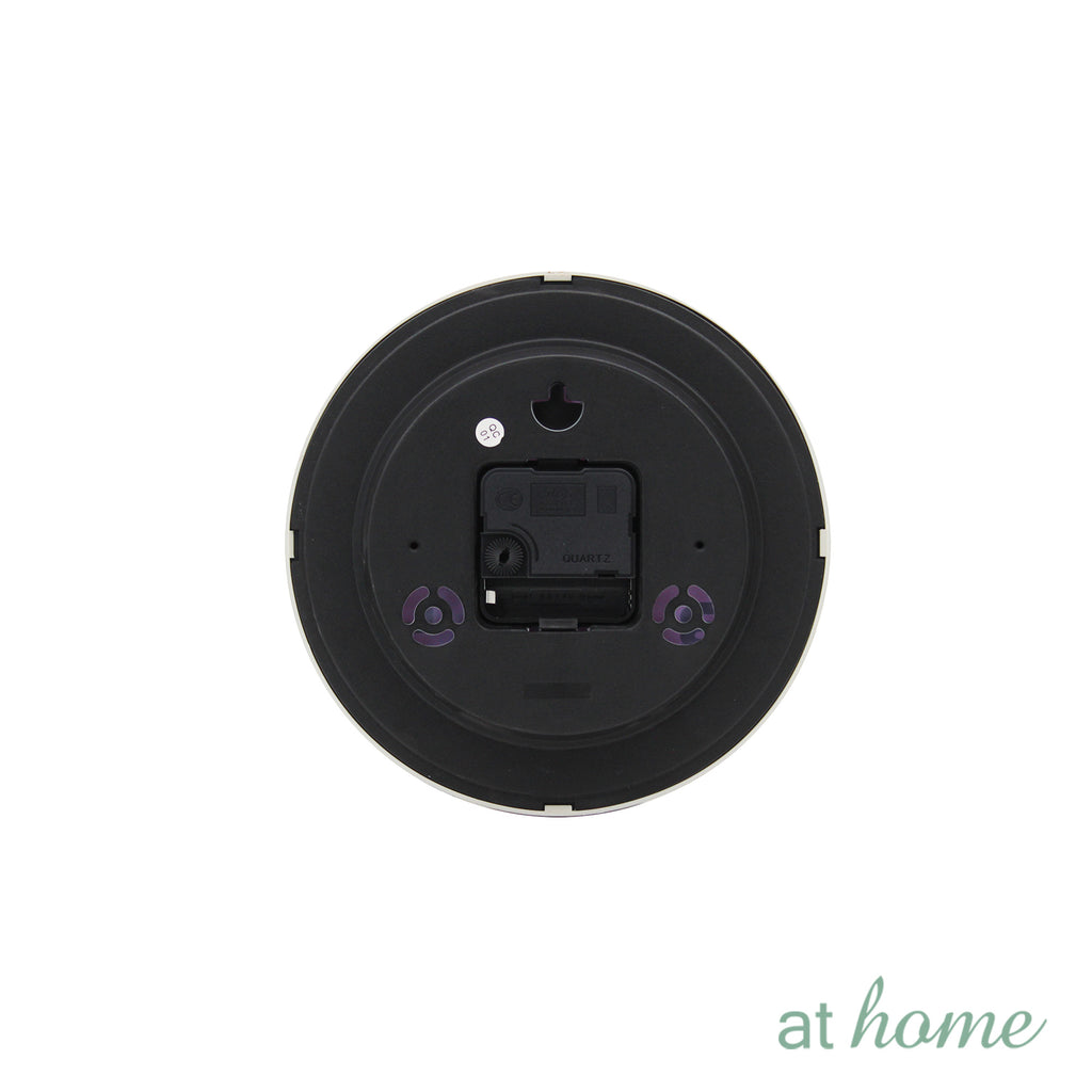 SIZE AND COLORS: The clock measures 7.8 x 7.8x1.6 inches (19.8x19.8x4 cm) Comes in Black, White and Taupe.