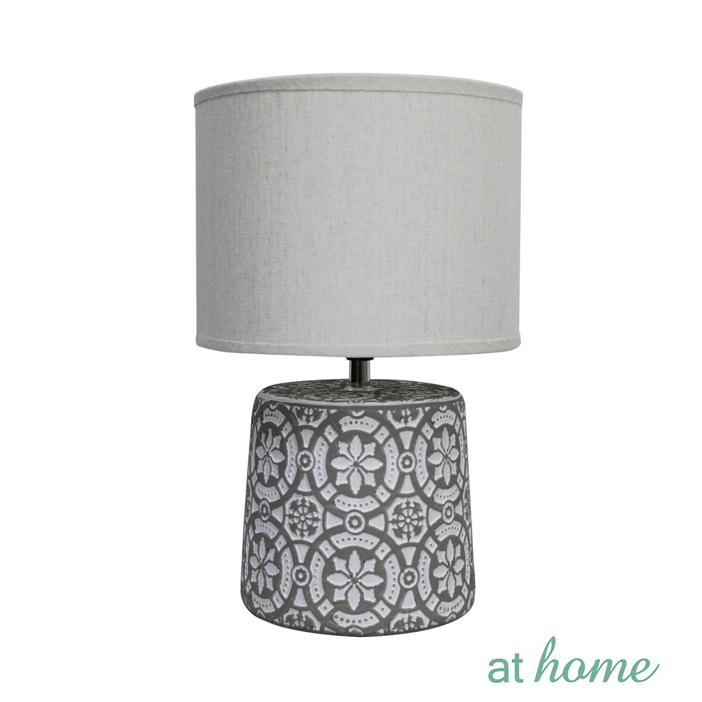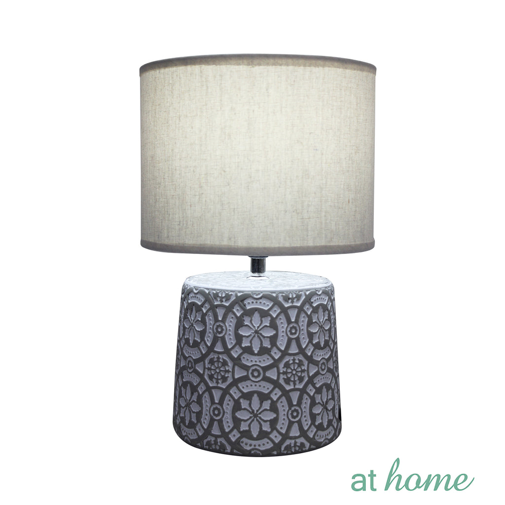 LINEN SHADE: The light shines through the soft linen shade enclosing the bulb, adding texture and atmosphere to any room it illuminates.