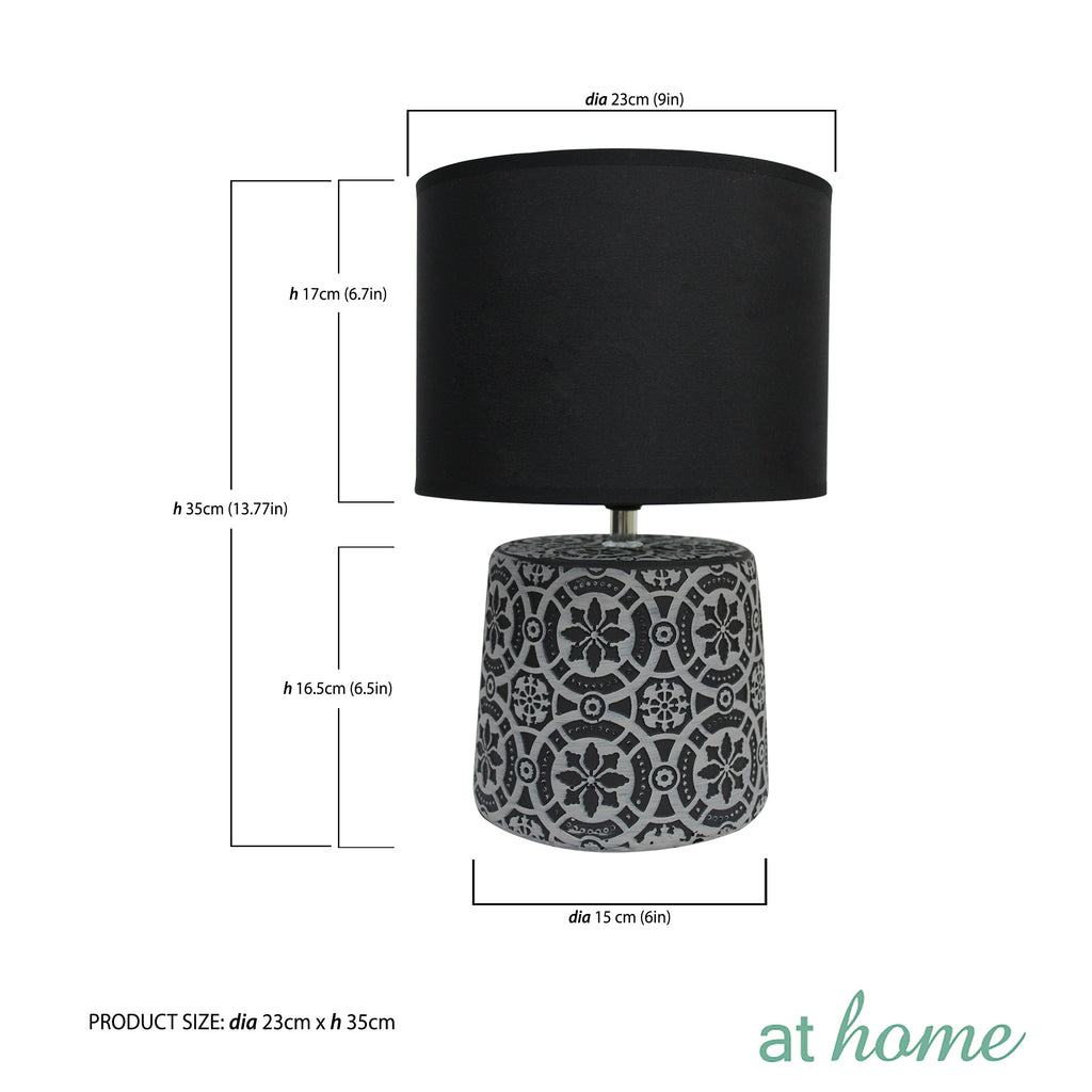 SIZE AND COLOR: Available in 2 color options: White & Black. The lamp measures 13.77 inches high (35 cm) and the shade is 9.05 inches wide (23 cm).