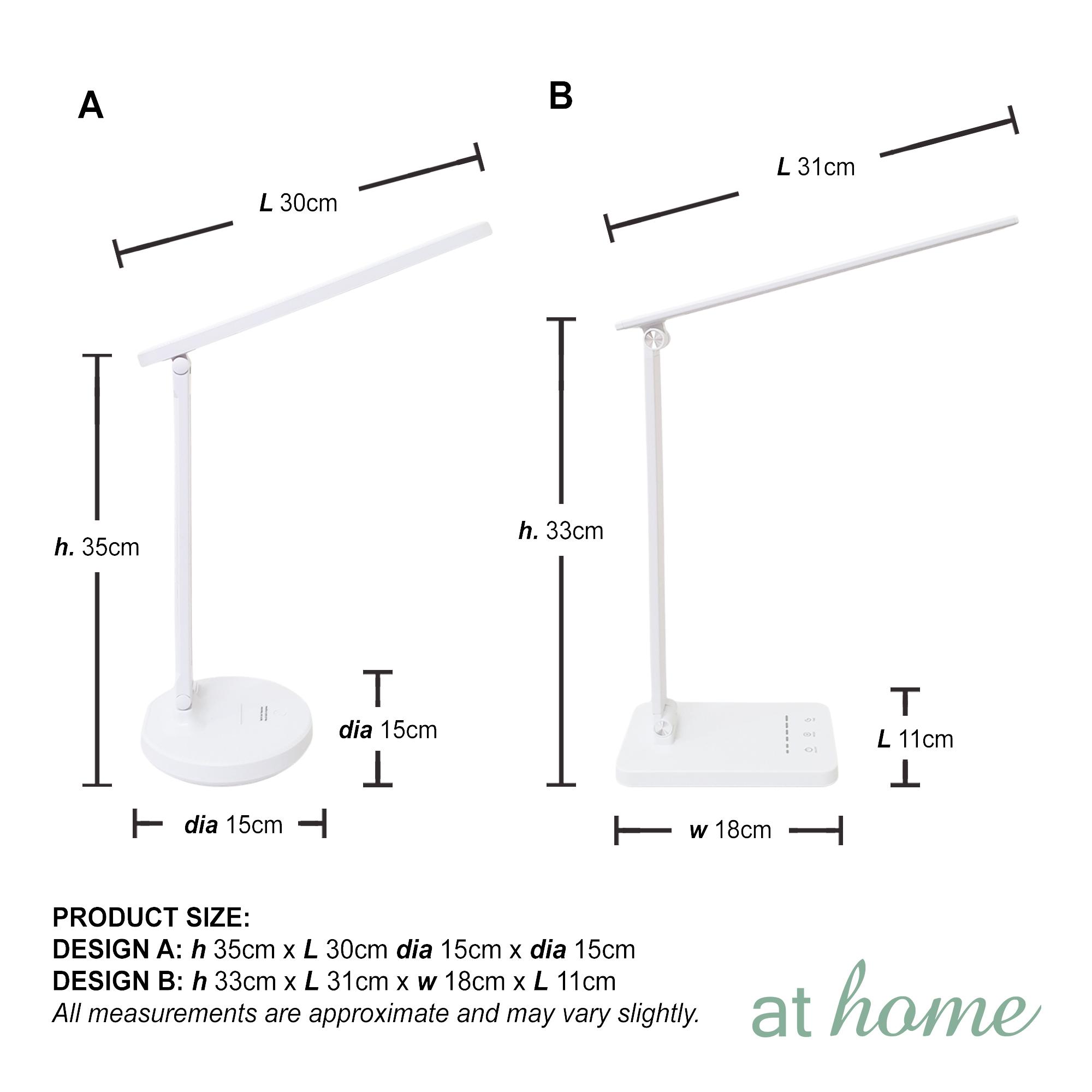 - Jay Foldable LED Desk Lamp: The lamp measures in height (35 cm), length (30 cm) and base diameter (15 cm).