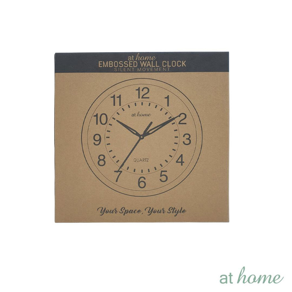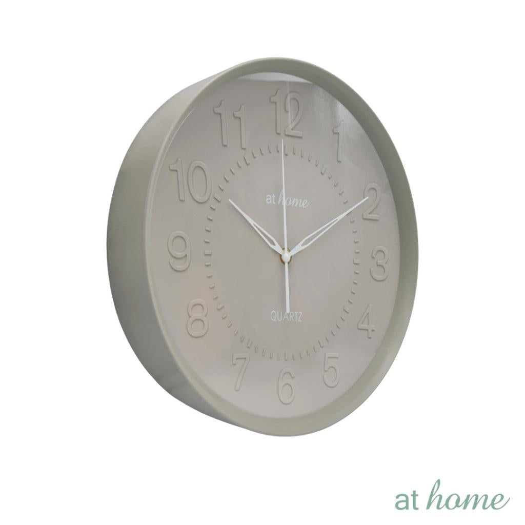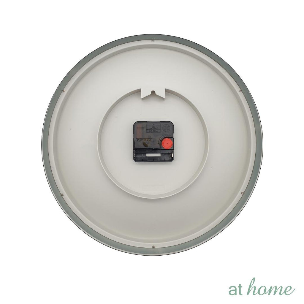 The clock measures a 11.4 inch (29.5cm) diameter by 2 inch (4.8cm) width.