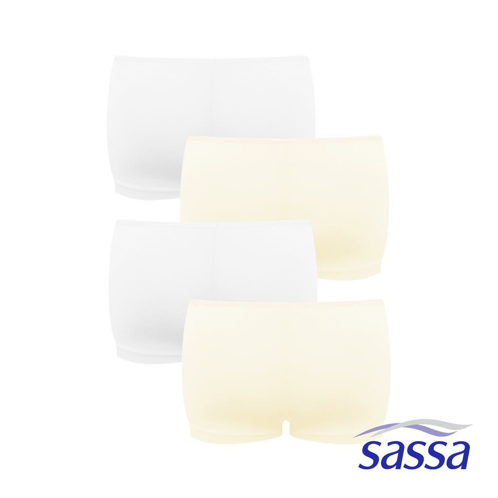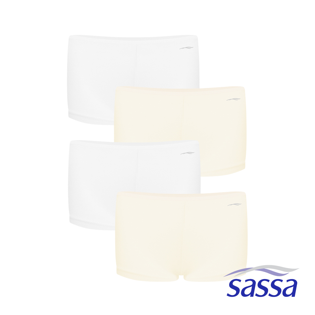 Get your kid an ultimate comfort and a flawless fit with these Sassa 4-in-1 Boyleg Panty with a soft crotch lining and elastic waist. -Waist Elastic-Crotch Lining-Logo Print-65% Cotton, 35% Spandex