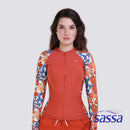 Stay stylish and sun-safe with the Sassa Pumpkin Delight Full Zipped Long-Sleeved Rashguard, featuring UPF50+ protection, removable pads, and a full front zipper for easy wear. Its all-over print contrast sleeves add a bold touch, while the recycled fabric makes it an eco-friendly choice for every adventure.