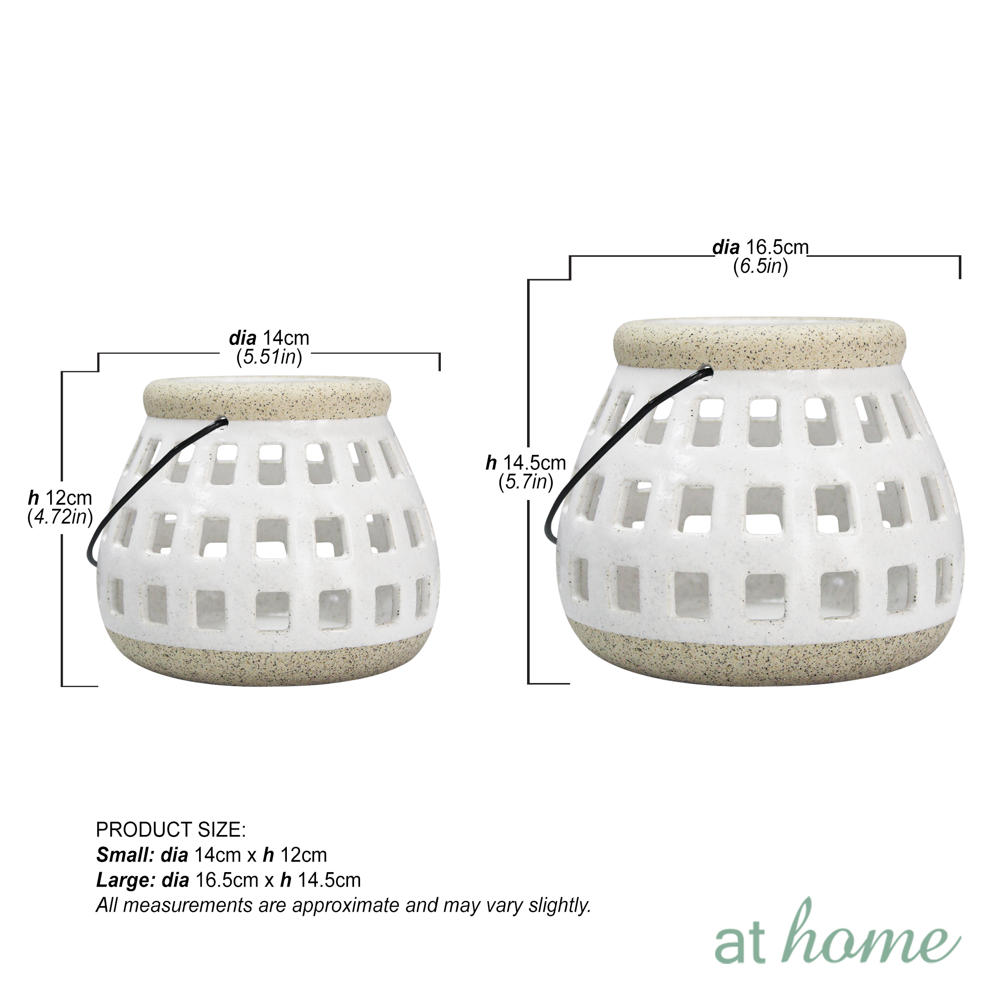 Small: Diameter – 5.51 inches (14 cm), Height – 4.72 inches (12 cm)