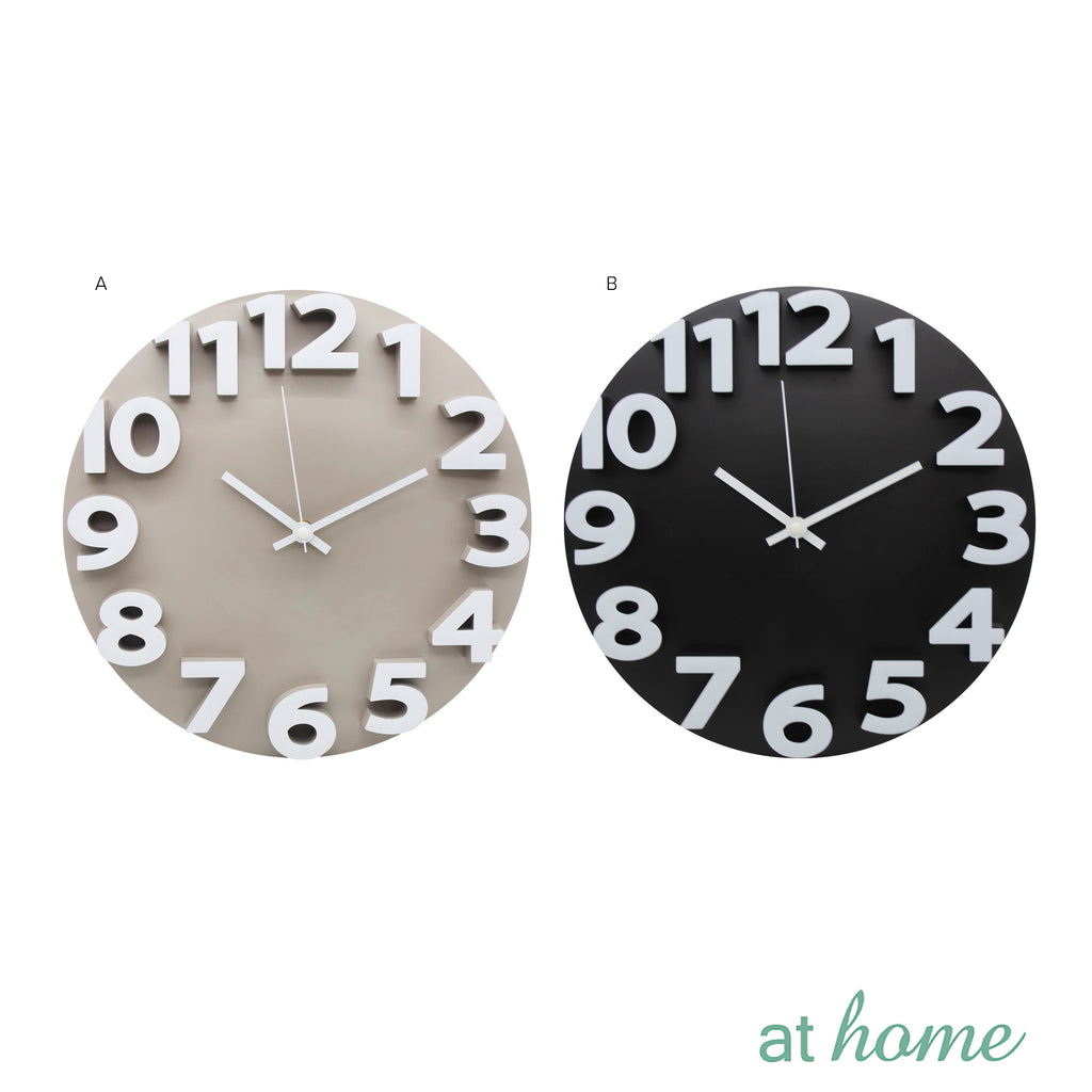 SIZE AND COLORS: The clock measures a 12 inch (30.5cm) diameter by 1.2 inch (3cm) width. Comes in Black and cream.