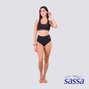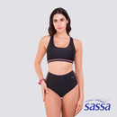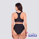 The Sassa Sportif Bikini Set brings a sporty-chic vibe with its stripe detail, comfy lining, and racerback design for a secure fit. Removable bra pads let you adjust your support, while a free matching scrunchie adds a cute touch. Perfect for beach days or poolside lounging, it’s made for style, comfort, and fun.- Scrunchie