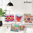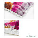 TRENDY DESIGN: Add a modern and colorful tie dye accent to your home decor with these throw pillows with cute little pom poms that will make any seat more inviting and make you look sitting pretty!