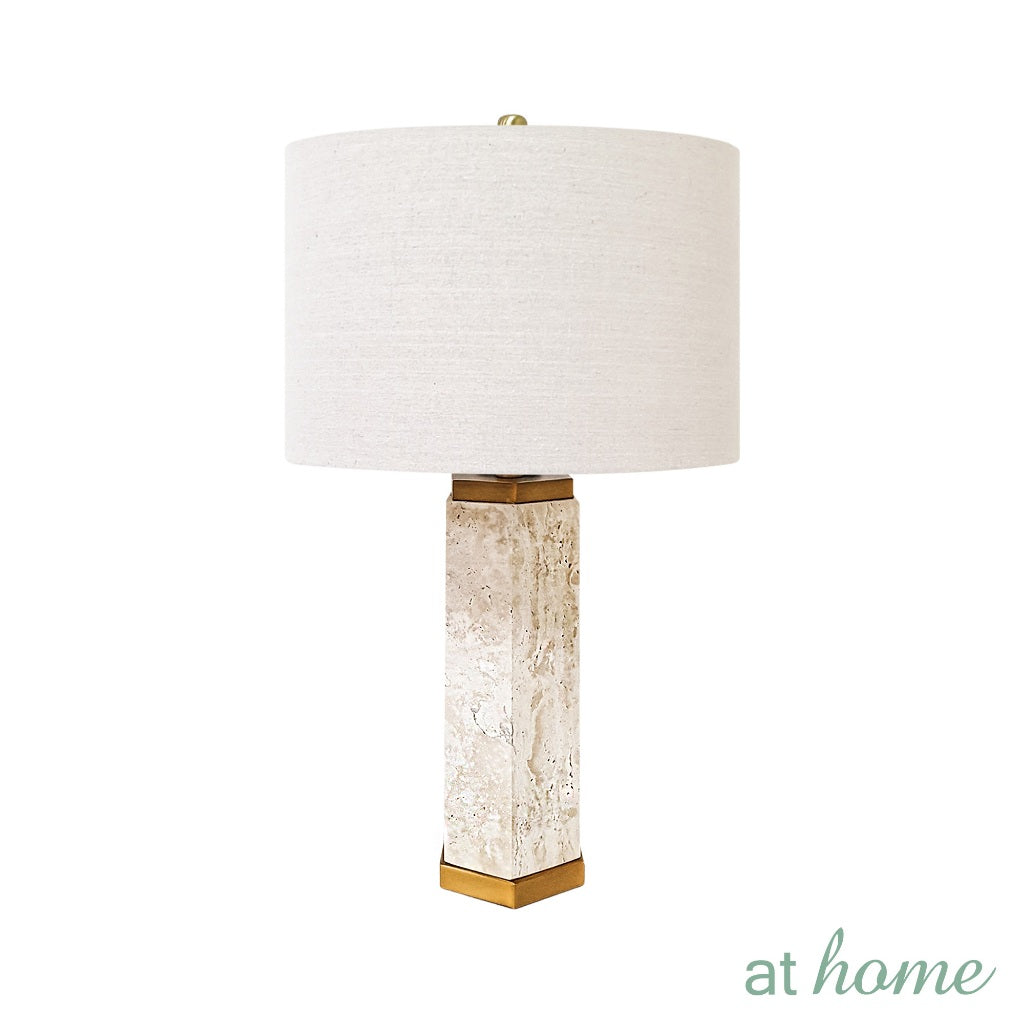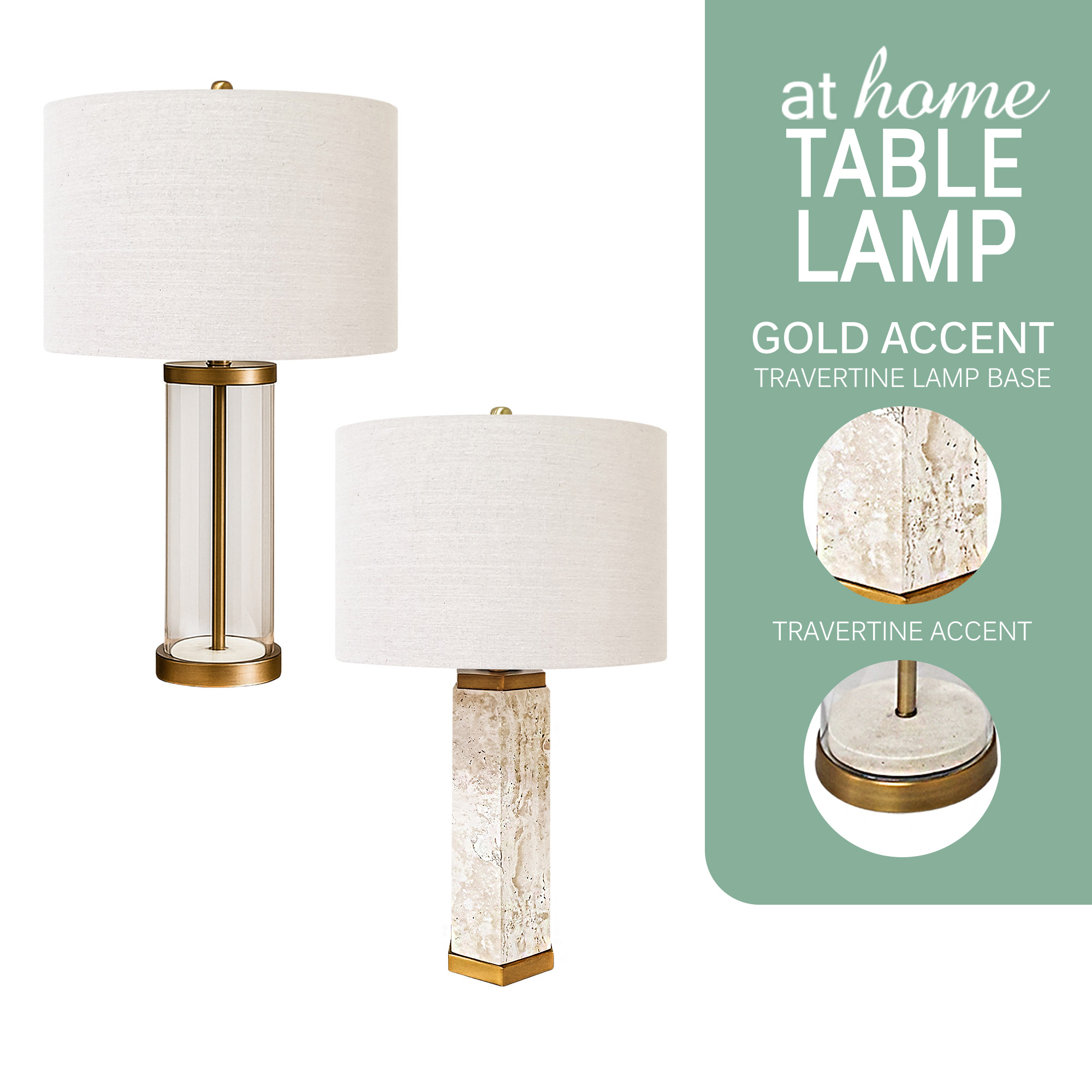 PERFECT GIFT: This lamp is a perfect gift or home accessory. It comes with a travertine stone or clear glass base with gold details and a cream fabric shade. Simple, stylish, and great for adding warm light to any room.