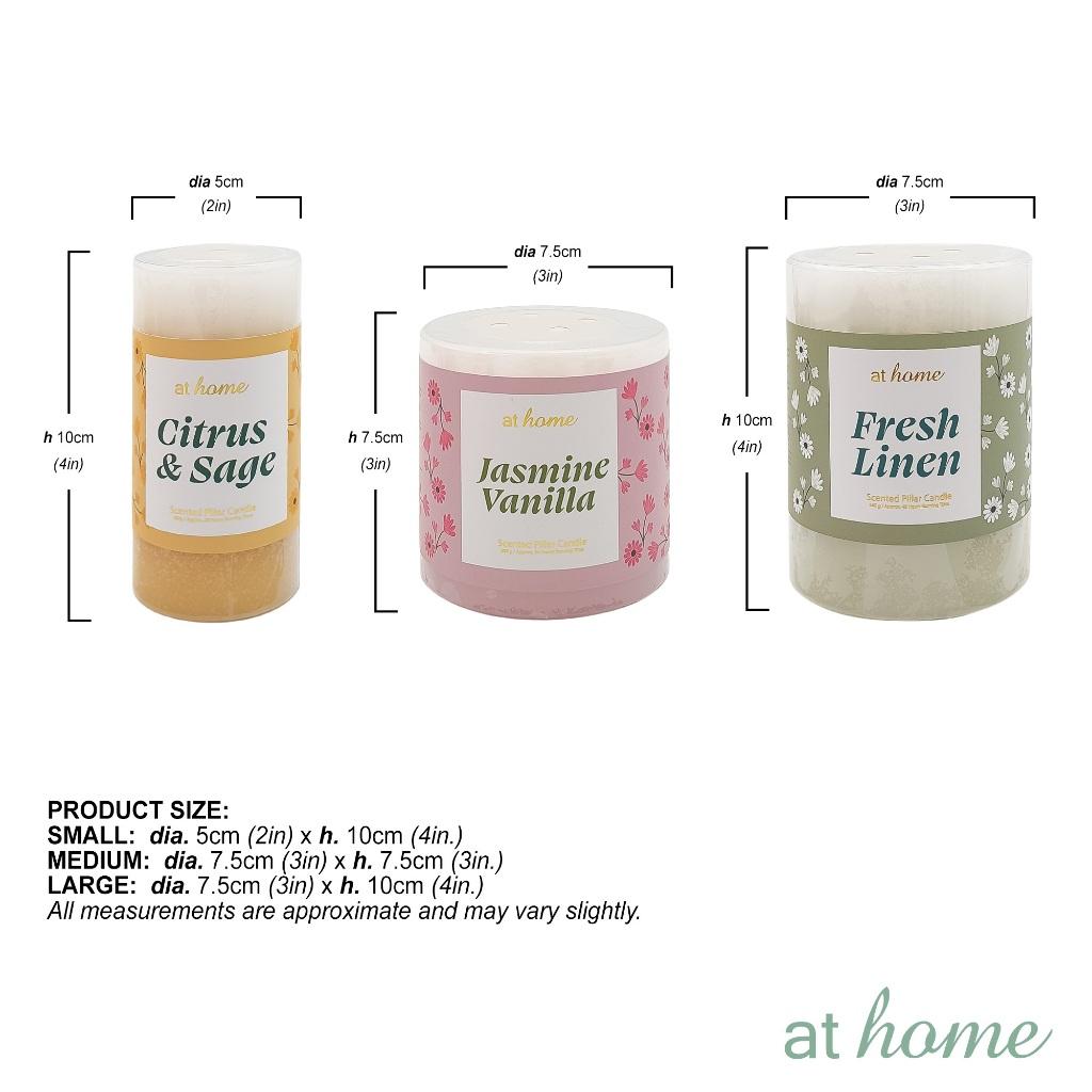 MEDIUM: Diameter is 3 inches (7.5cm) and height is 3 inches (7.5cm). Burning time: 34 hours