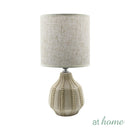 LINEN SHADE: The light shines through the soft linen shade enclosing the bulb, adding texture and atmosphere to any room it illuminates.