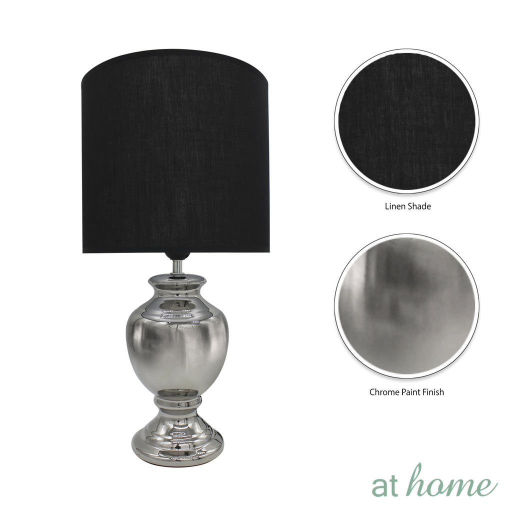 CERAMIC BASE & SHADE: This lamp will add a dash of luxury to your living room or bedroom thanks to its beautiful, premium ceramic base with chrome paint finish and linen shade. Any room it brightens gains texture and ambiance as a result of the light shining through the shade covering the bulb.